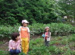 立っていてはおいしい苺は見つけられません。「しゃがんでみようよ!」 |