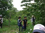 サクランボの枝を選ぶ高学年男子たち。